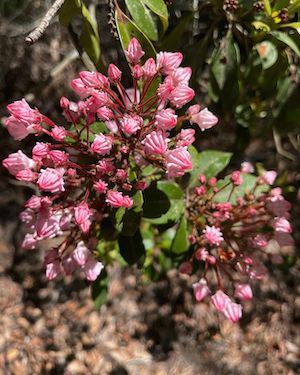 Description: Shrub or sometimes a small evergreen tree up to 25 feet tall with thick elliptic leaves 1-4 inches long. Showy pink to white flowers in clusters.